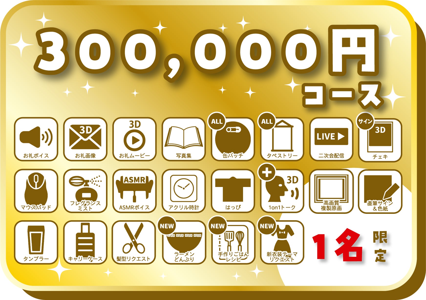 •㊗️達成㊗️『170万円達成』で、3Dアイドル衣装でのアクリルスタンドを3000円以上のコース全てに特典として追加🎁(グッズなし5000円コースは除く)