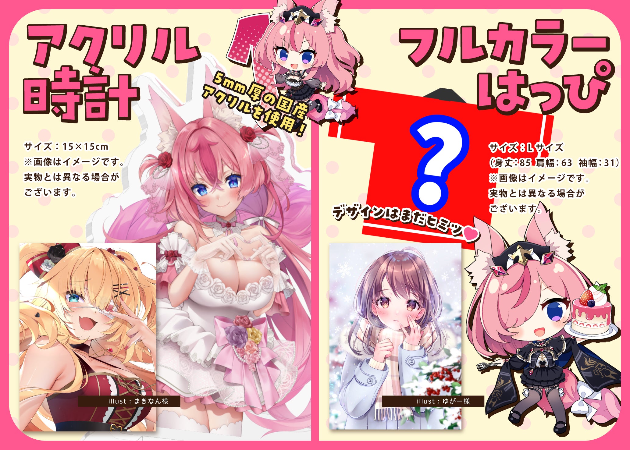 達成を記念して、3Dアイドル衣装でのアクリルスタンドを3000円以上のコース全てに特典として追加します!(グッズなし5000円コースは除く)