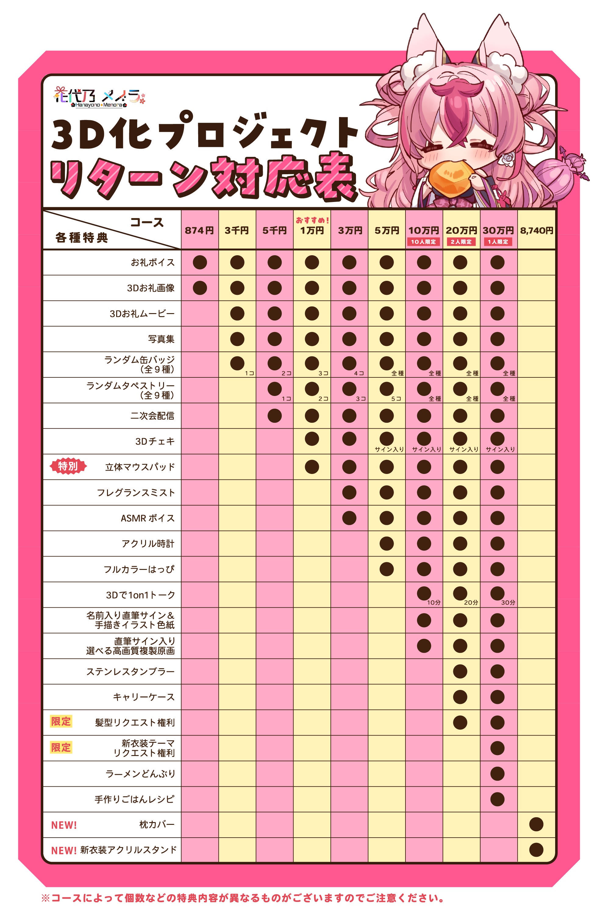 ➕「メノラin 3Dお部屋ポストカード」を3000円以上のコース全てに特典として追加🎁(グッズなし5000円コースは除く)
