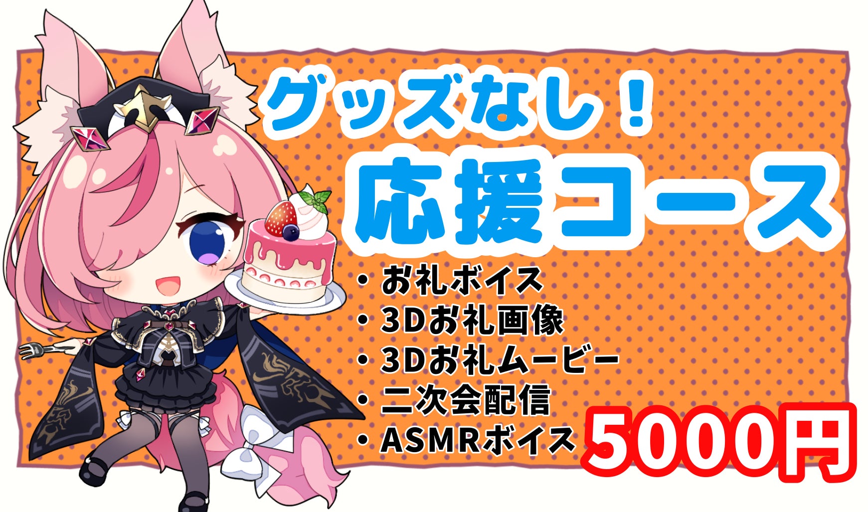 となっています。もちろん海外の方以外でもご支援可能です!「グッズはいらないけど応援したいな…」という方や、「3万円コースでないと聴けないASMRボイスを枕カバーとセットで聴きたい!!」という方などにおすすめなのじゃ♡