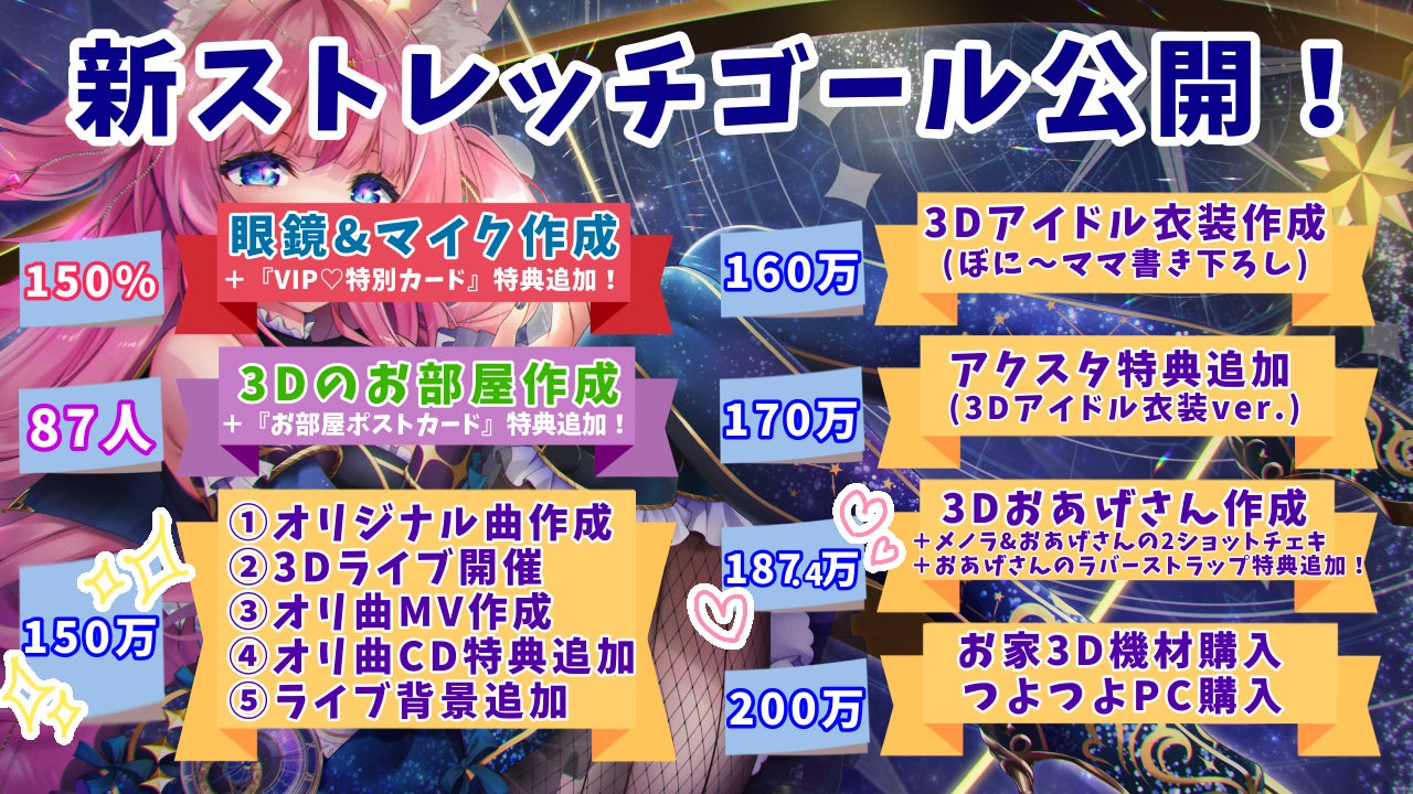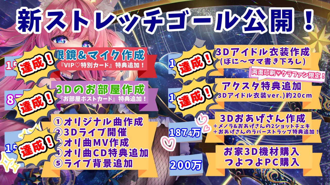 •㊗️達成㊗️『170万円達成』で、3Dアイドル衣装でのアクリルスタンドを3000円以上のコース全てに特典として追加🎁(グッズなし5000円コースは除く)