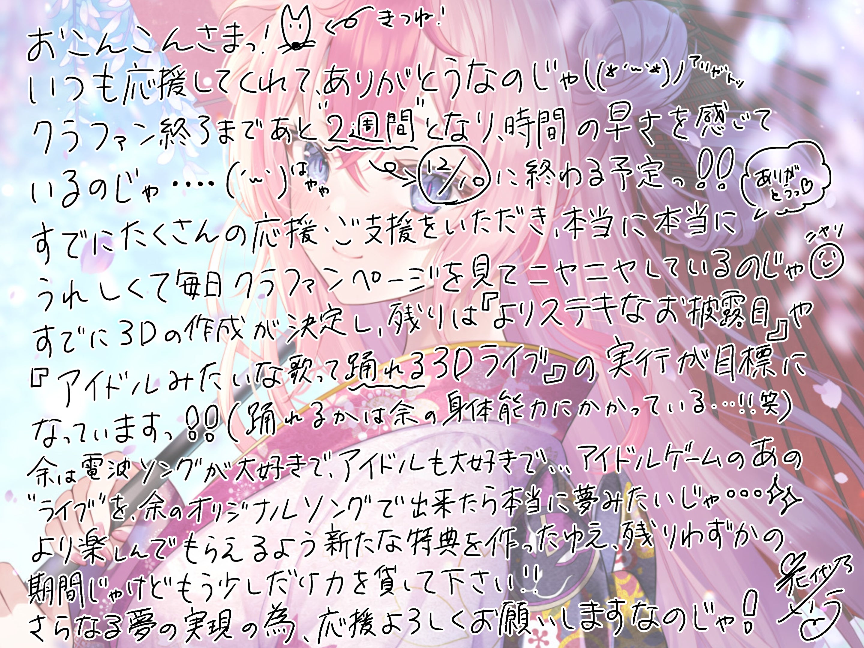 クラファン終了まであと2週間切ったのじゃ!(11月26日追記)