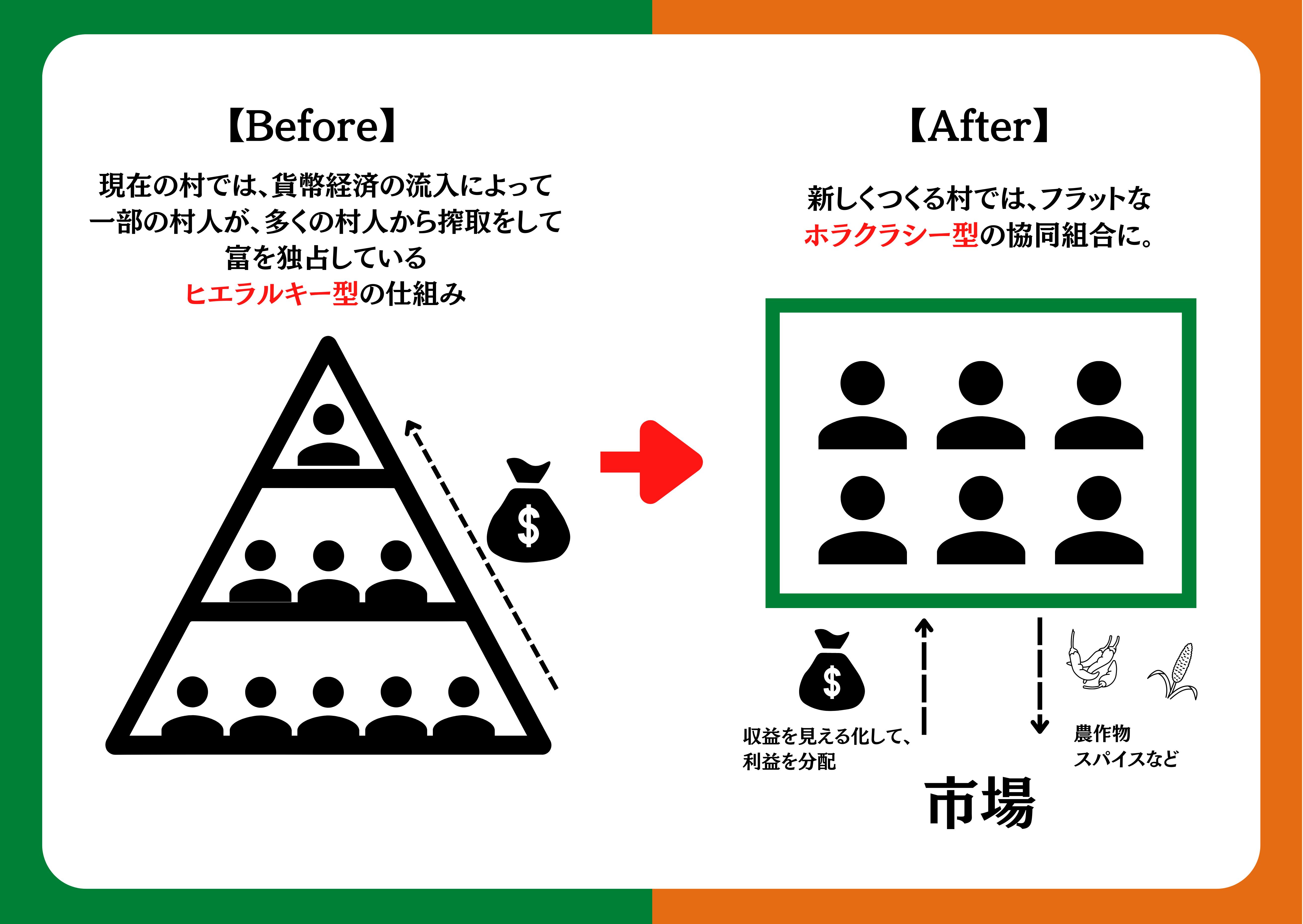 “世界最貧国”とも言われ、資源なども乏しい状況ですが、クラウドファンディングを通じて、価値観に共感して賛同していただいた上で支援していただき、村人同士で対話をし、自治の村を作っていくことが目標です。