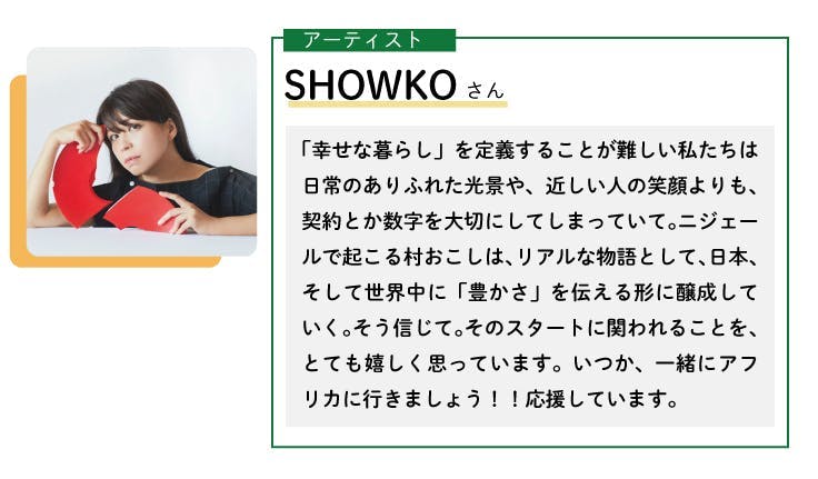 京都を拠点にして活動されているSHOWKOさんが手がけるSIONEのお椀にニジェールのイメージ画像を描いていただきます。器を中心とした《読む》プロダクトをコンセプトにされており、ニジェールのことに思いを馳せていただける限定のお椀になるのではないかと思います。