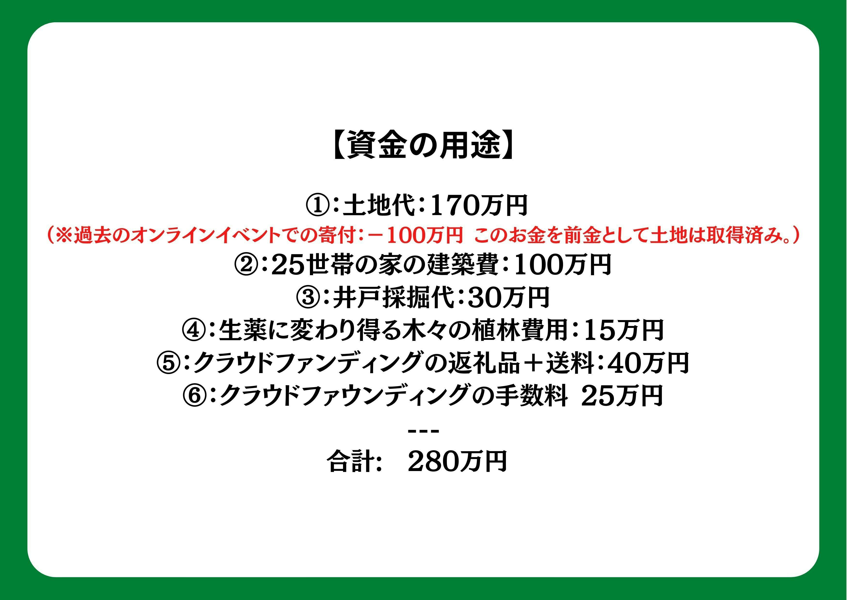 この村のプロジェクトは、近い未来にはゴールはない、共感・応援してくださる多くの人と一緒に挑みたいので、この目標にしました。「こんな男がいるぞ!」とシェアや拡散していただけると嬉しいです。そして最後まで、応援してください。(10月11日 追記)