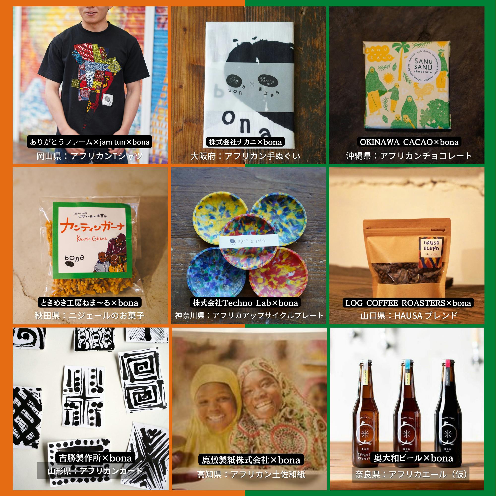 今回、用意した返礼品は、このプロジェクトに共感してくださっている、全国の方々とコラボレーション(別名:日本アフリ化計画)させていただきました。