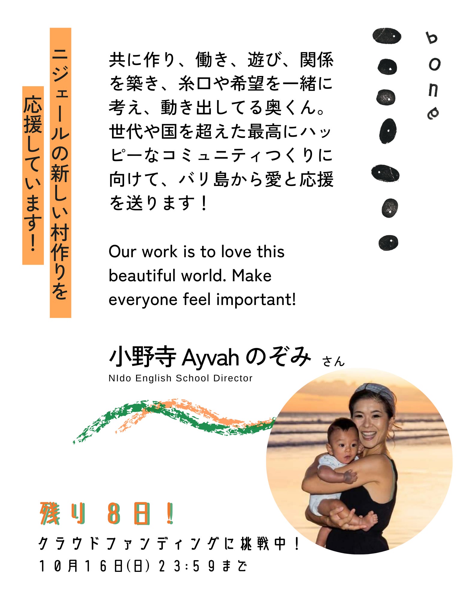 3人目の応援メッセージはインドネシア・バリ島で地域活動に情熱を注いでいる小野寺Ayvahのぞみさんからいただきました!