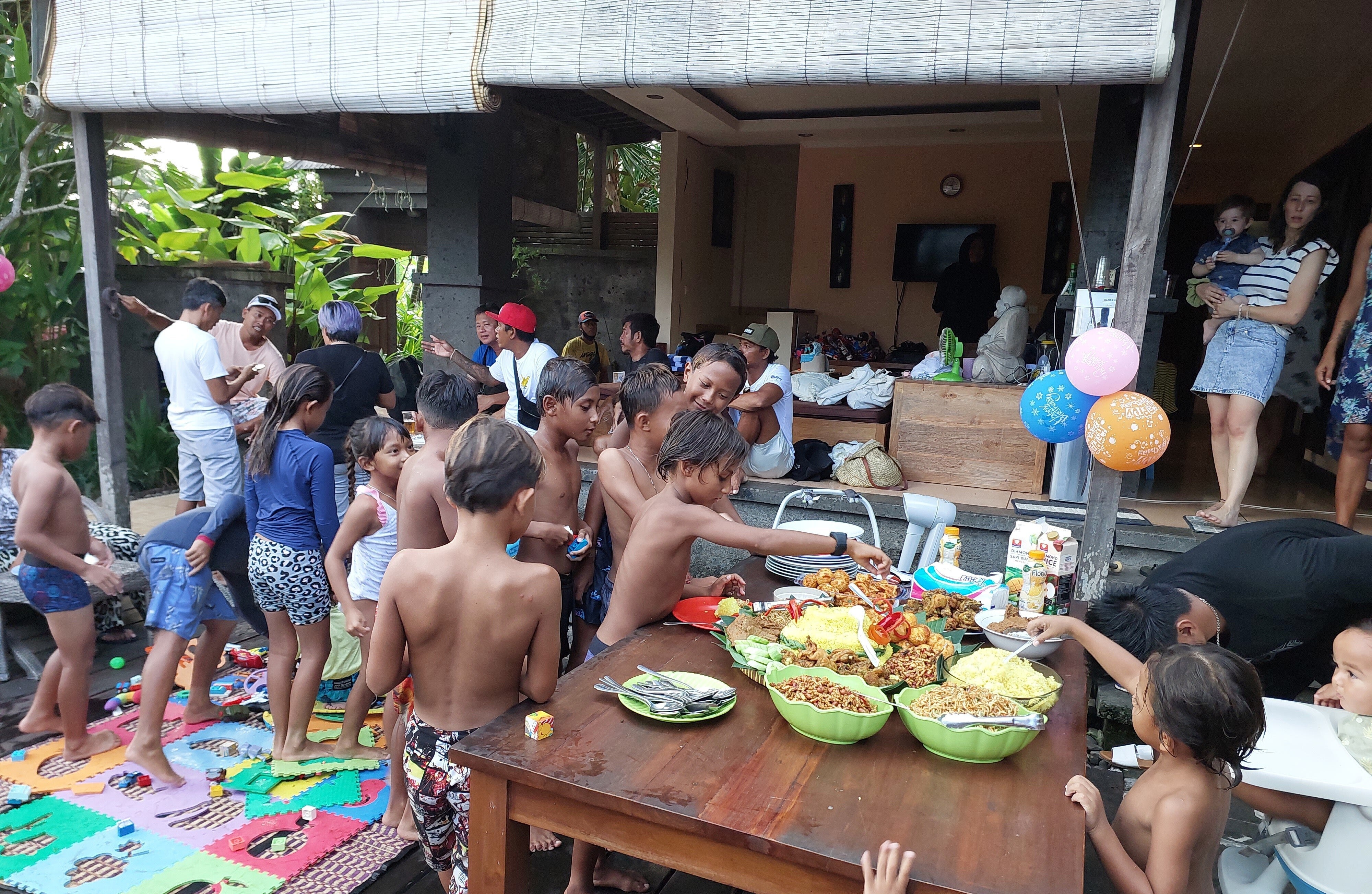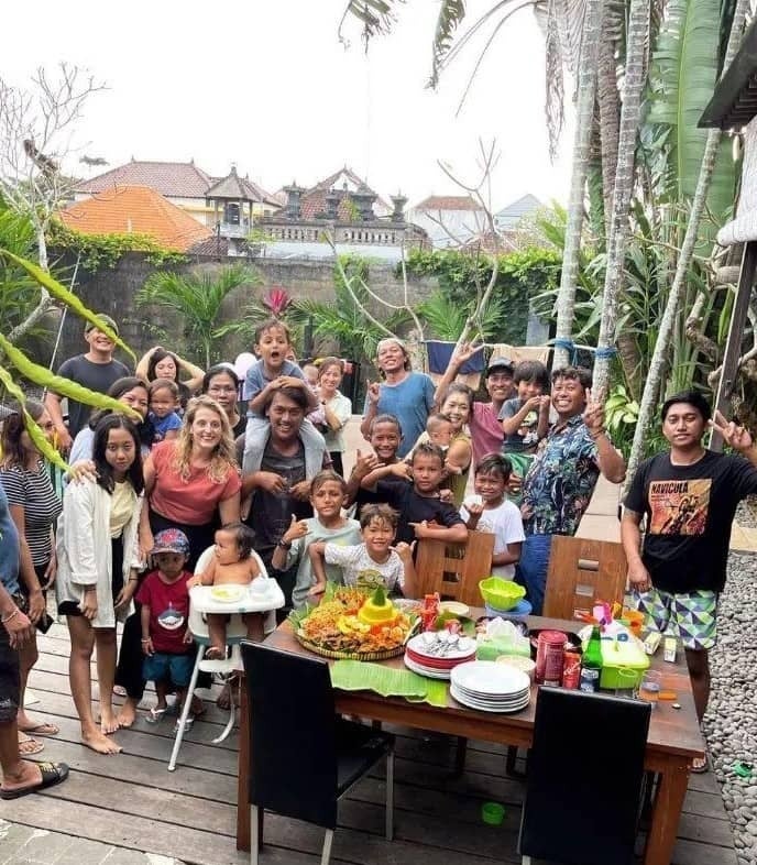 (シェアハウスや地域のメンバーとインドネシアの独立記念日をお祝いしている写真。まるで大家族。)