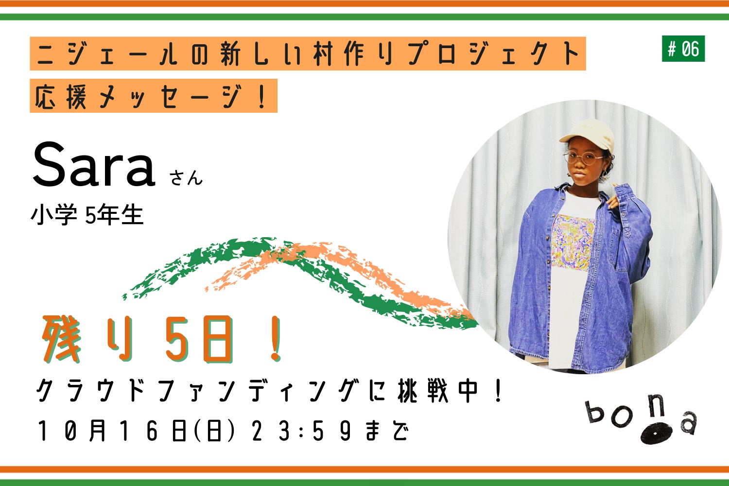 なんと、最年少の小学校 5年生(11歳)Saraさんから応援メッセージをいただきました!
