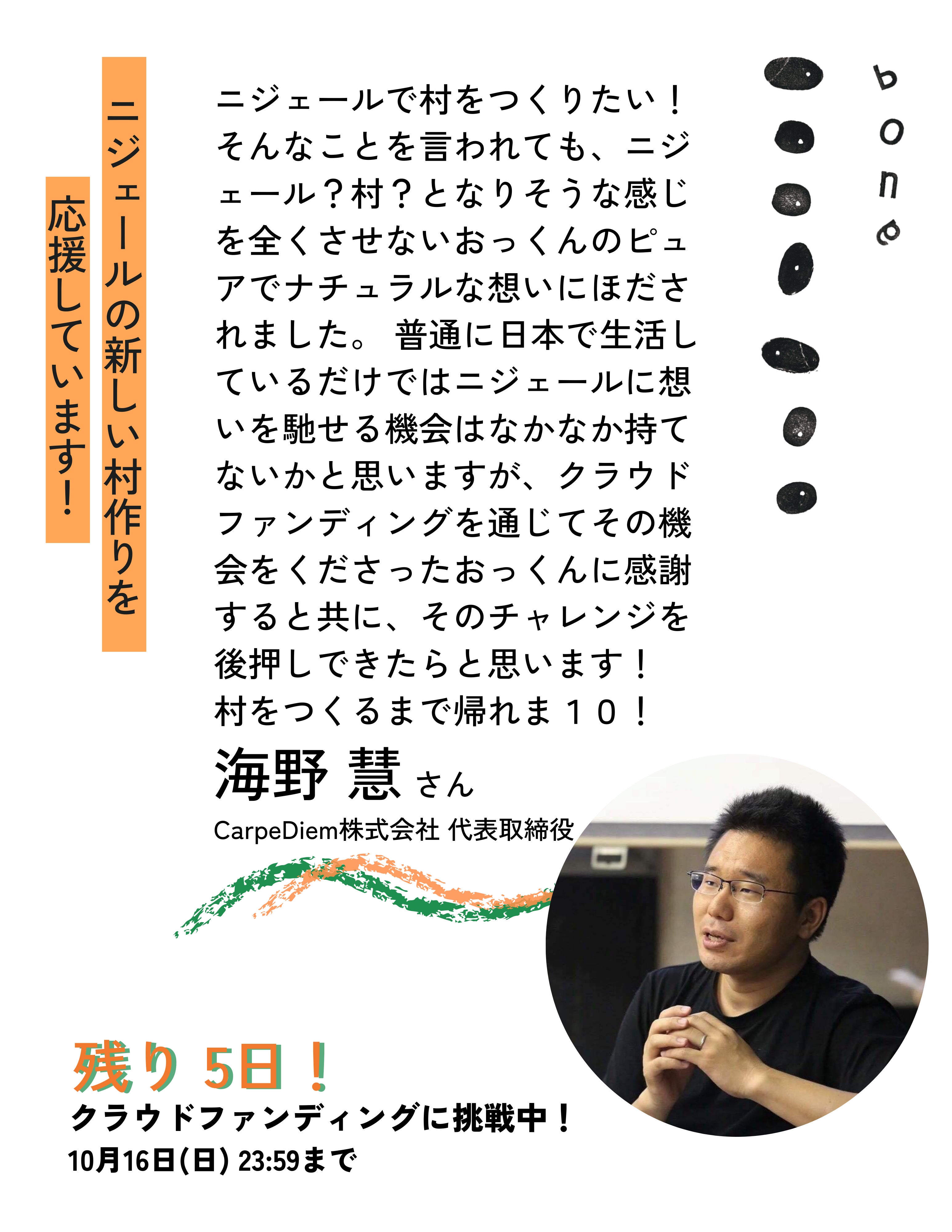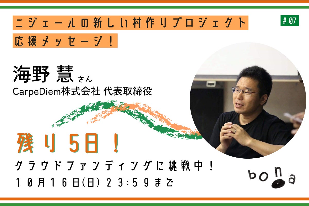 CarpeDiem株式会社 代表取締役 海野慧さんから応援メッセージを頂戴しました!