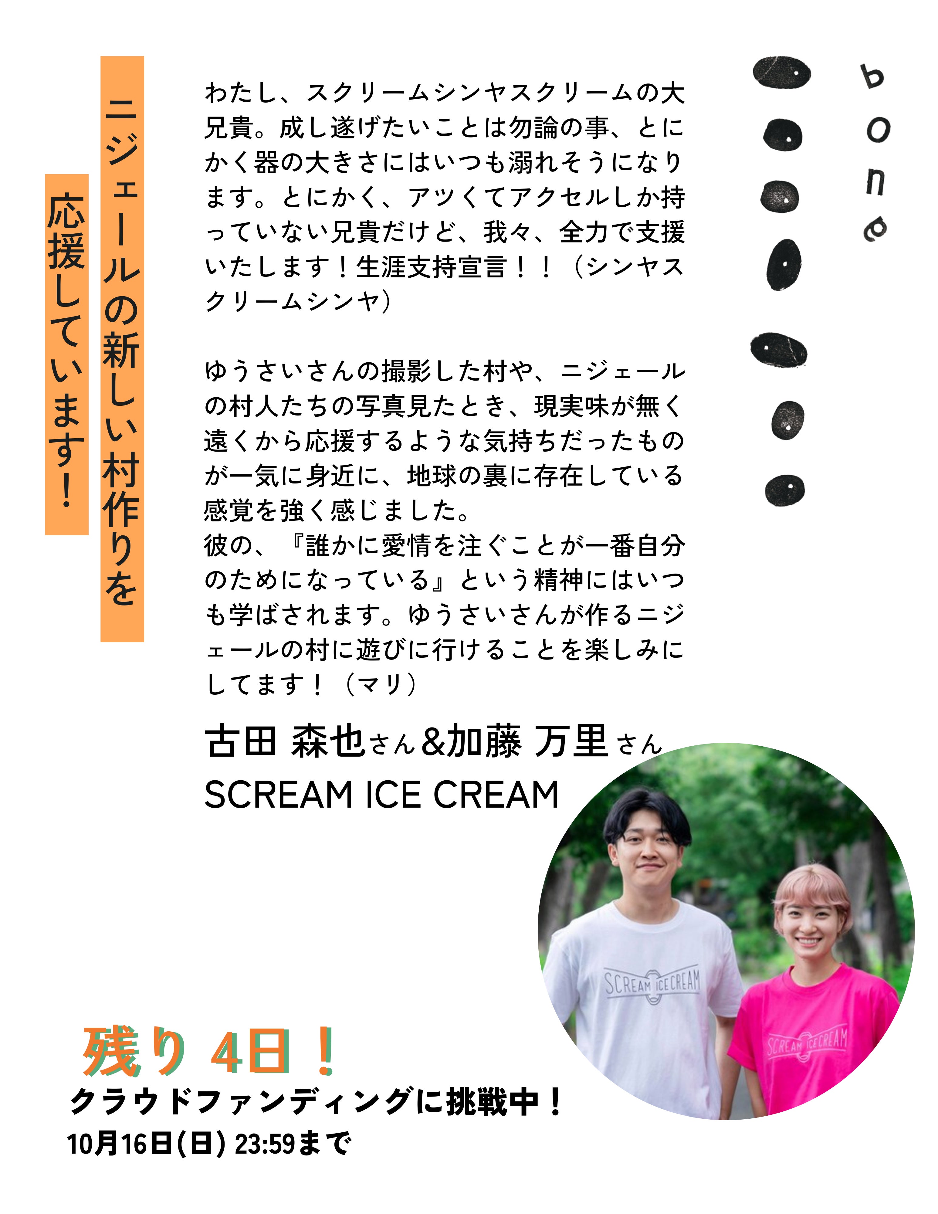 今の僕の目標は、アフリカのスパイスを使って、彼らとアフリカアイスクリームを開発すること。見た目にはよらず、繊細な味のアイスがとっても美味しいので、ぜひECサイトで注文をしてみてください。いつの日か、「アフリカアイスを届けられるように」。