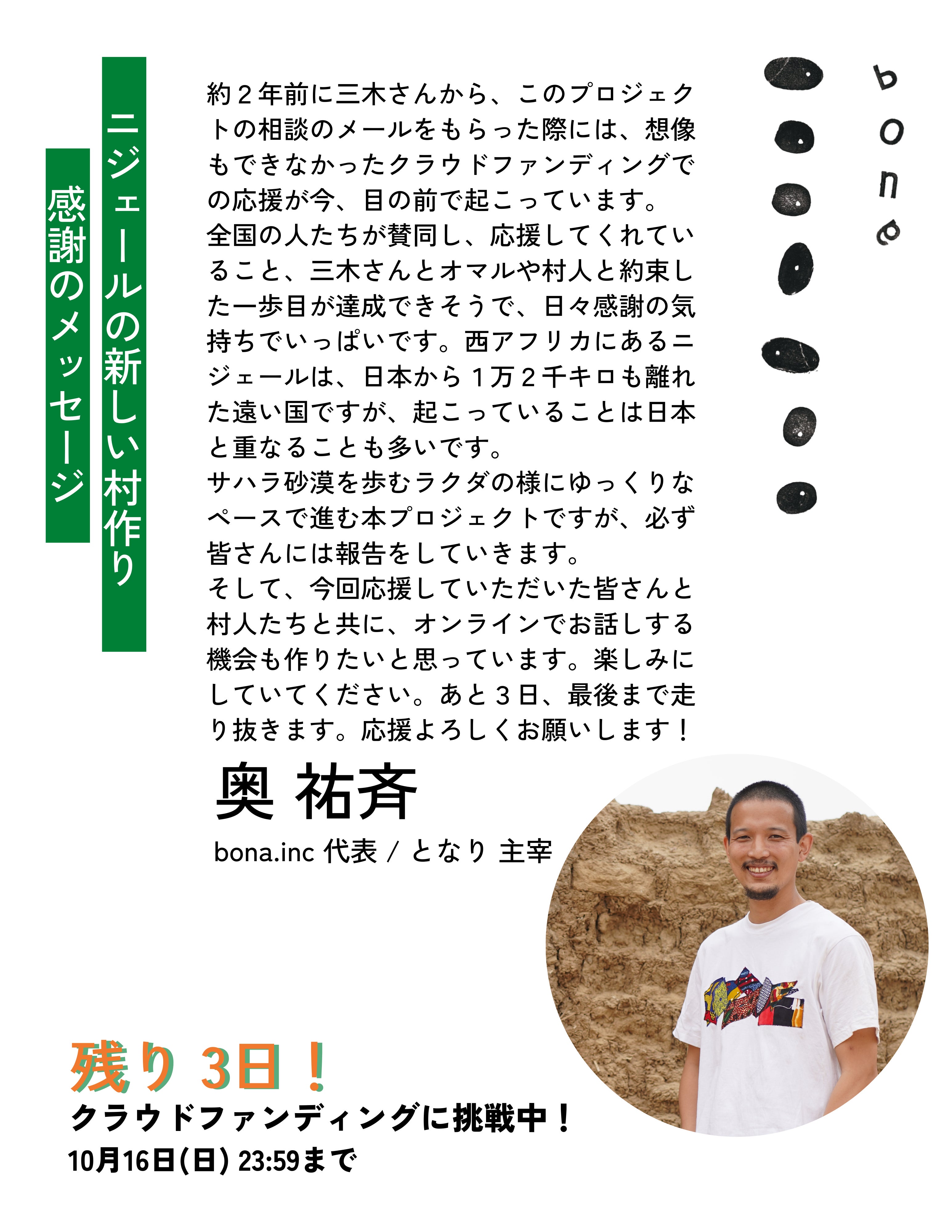 だけど、最後は遠くまで行きたい。あと3日頑張って、まずはこのクラウドファンディングをしっかりとした形で終わりたいと思っています。