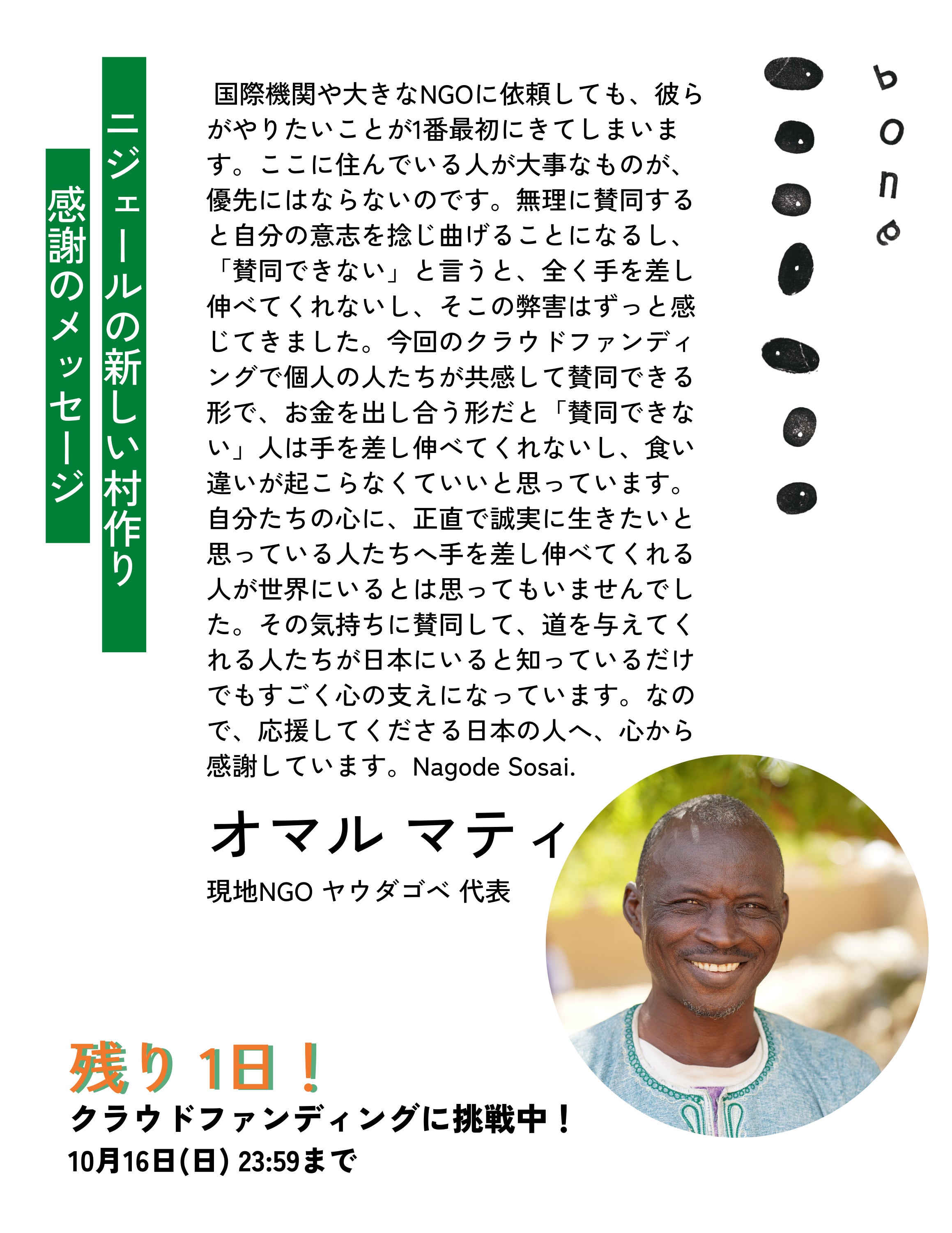 今回のクラウドファンディングの全ての返礼品にあるコミュニティの中で、オンラインの会をやってオマルを登壇させたいとも考えています。