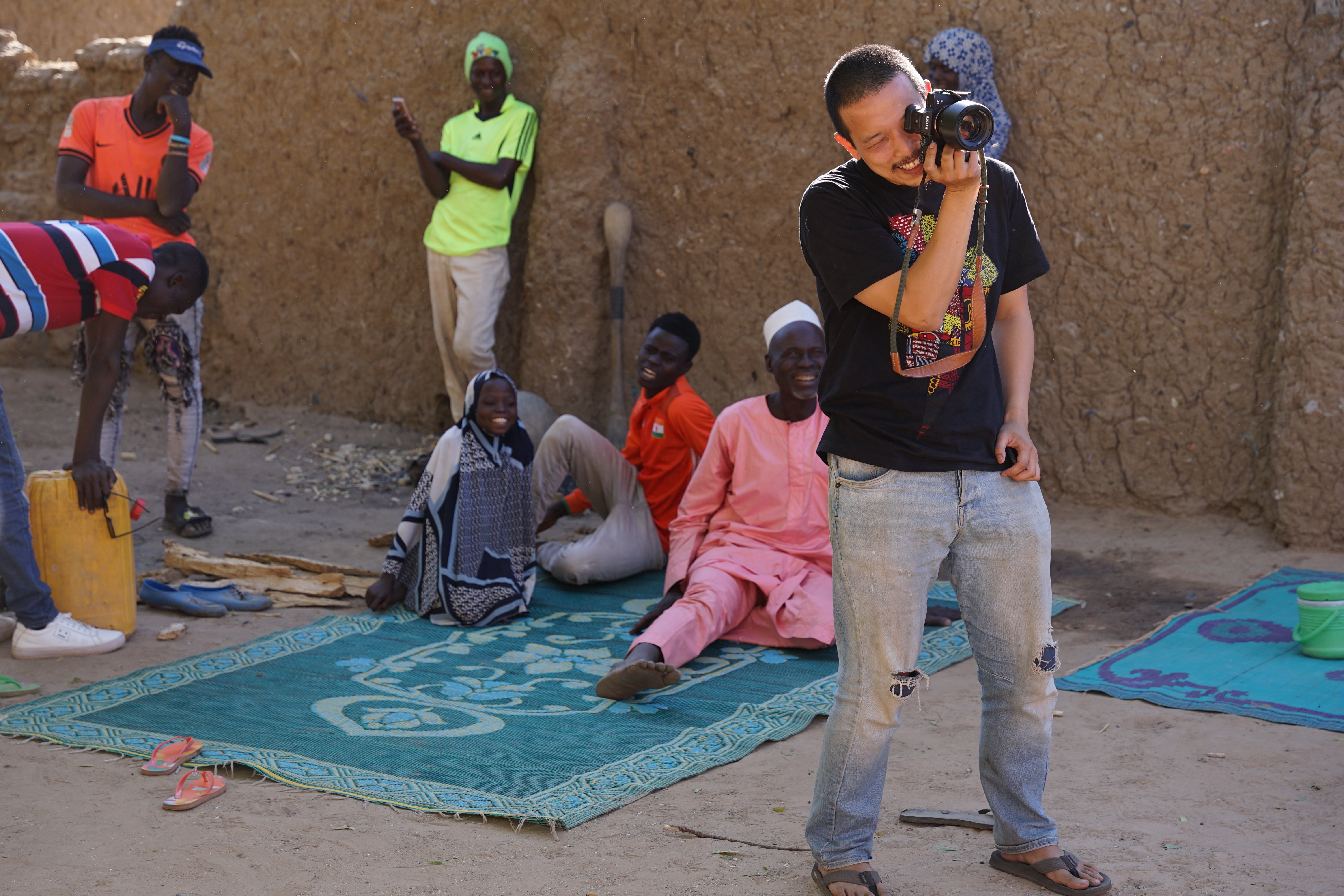 画像キャプションカメラを構えているのが僕、奥 祐斉です。ニジェールの村に滞在した時のもの。