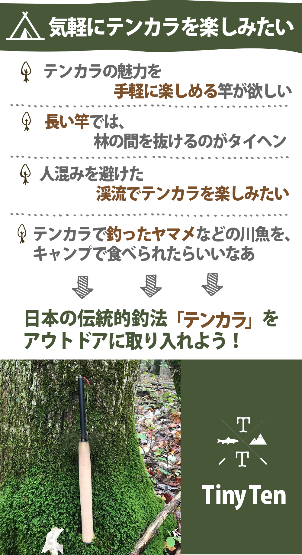 気軽に「テンカラ」が楽しめるTiney Tenは、クラウドファンディングで多くの支持を集めた実績があります。