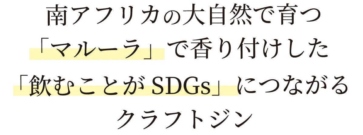 ゾウやアフリカの壮大な自然に生きる動物たちも魅了されるこの「マルーラ」、お楽しみいただけるのはこのクラフトジン「インドラブ シトラスジン」などの加工品だけなのです。