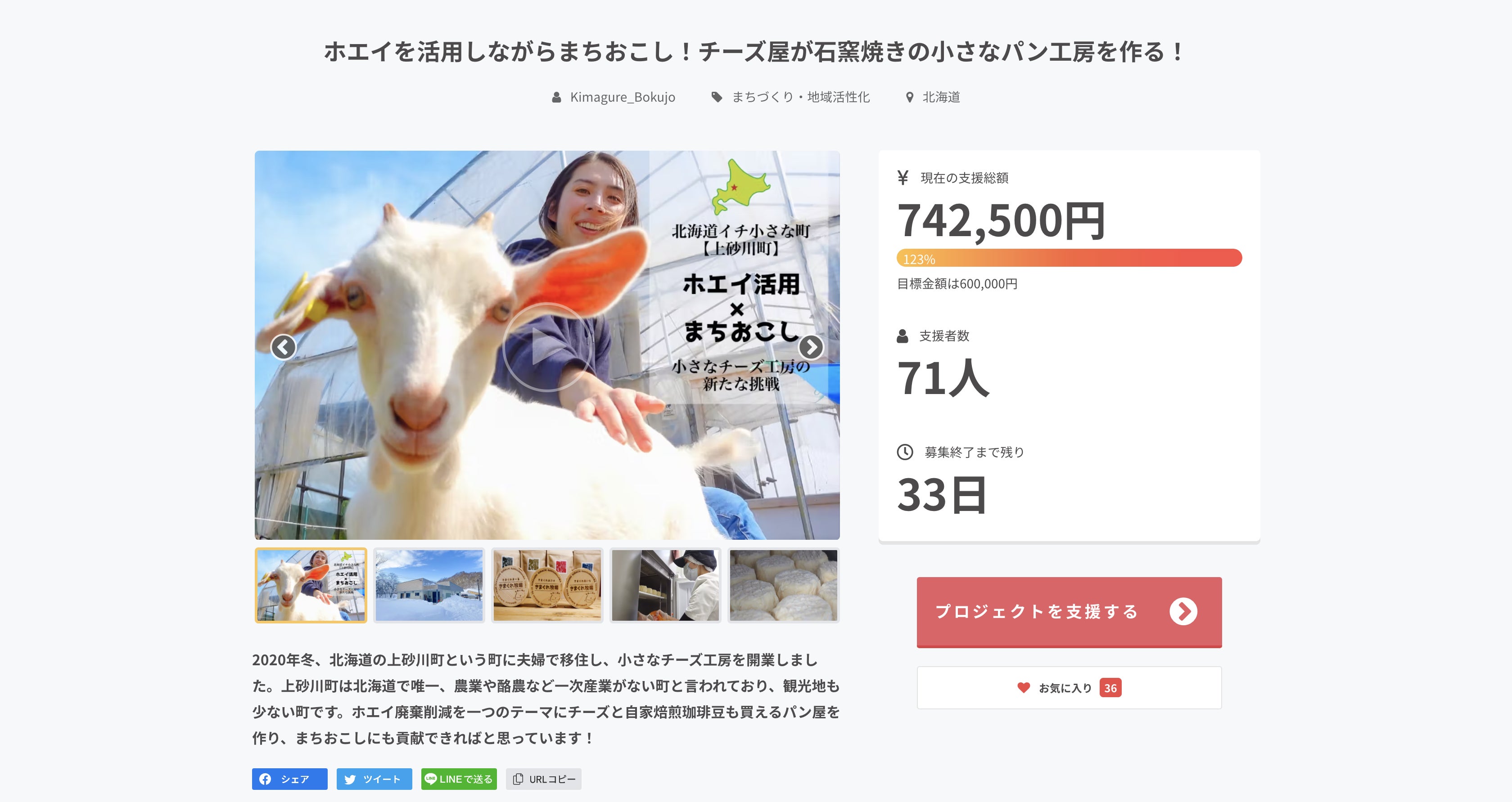 クラウドファンディング開始から今日で1週間が経ちました、有難いことに71名もの方々に支えられて目標金額の60万円を達成!どころか【724,500円】という皆様からの、とてつもないご支援に夫婦ともども驚いております。