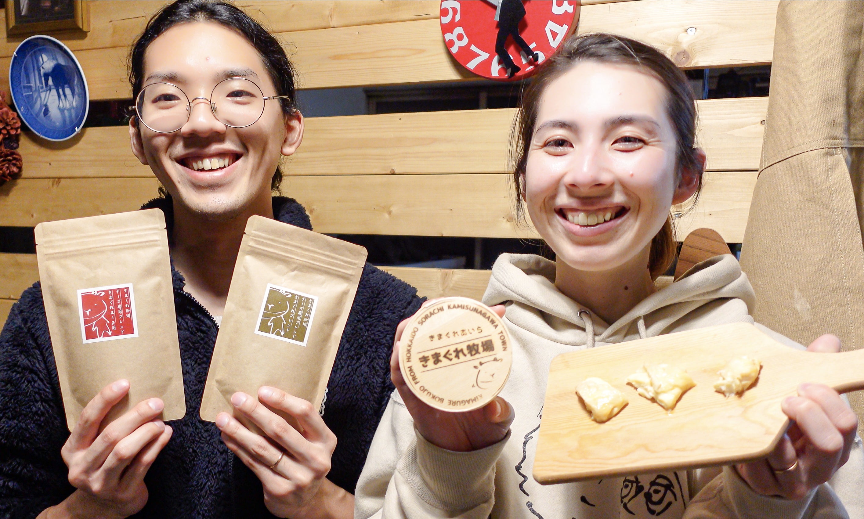 妻の玲美は4種類のウォッシュチーズを作っていて、僕は地域おこし協力隊として地域活性の仕事をしながら、自家焙煎珈琲を焙煎しています。