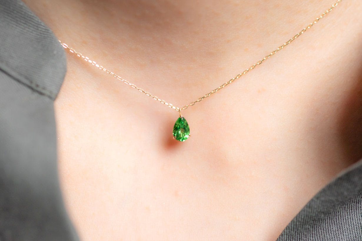 今回ご紹介させて頂きます緑色のガーネットのツァボライトもデマントイドも色々なカラーのお洋服をさらに上品に、
