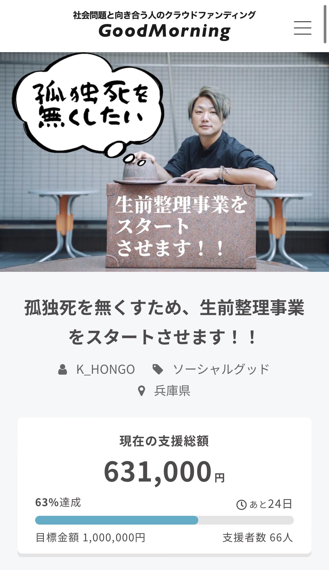 現在の総支援額が631,000円、支援者数は66人となりました。