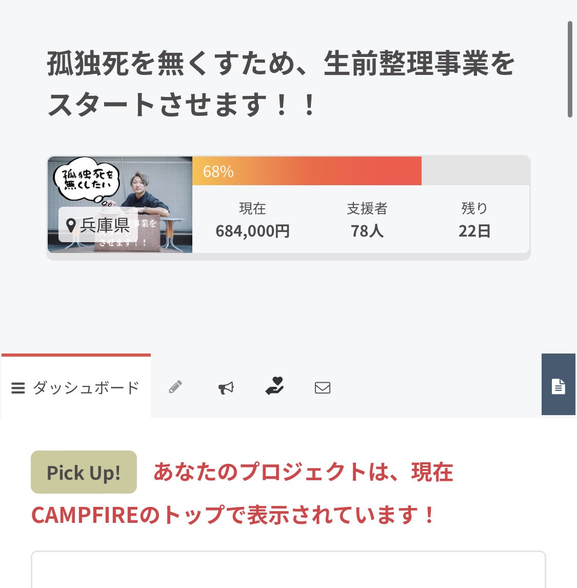 【CAMPFIREのトップに掲載していただきました!】