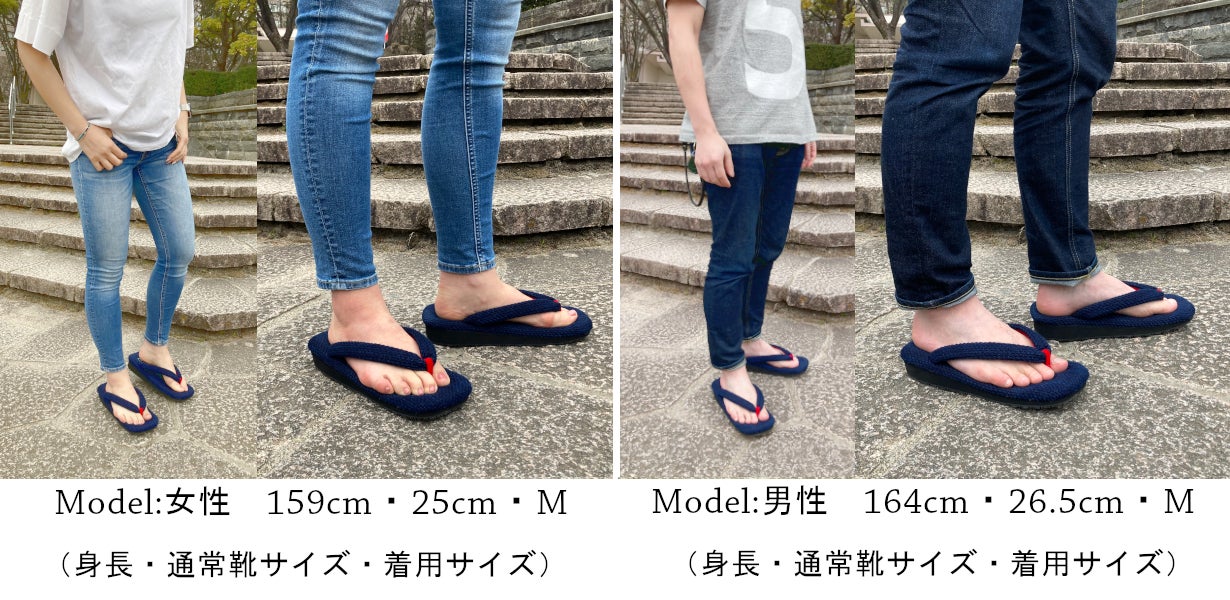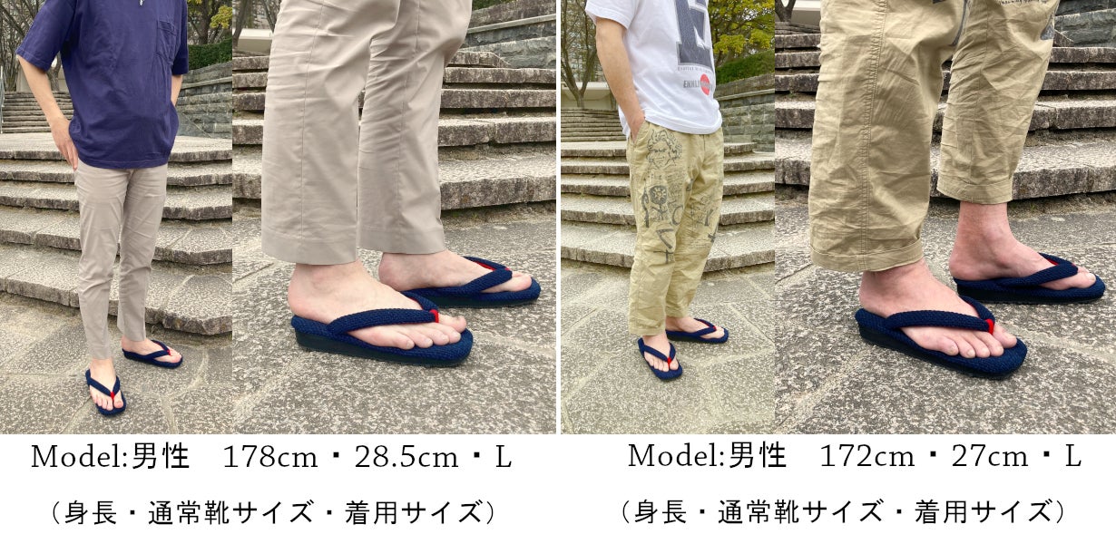 あくまで履き方やサイズ感はお好みでお選びいただきたいのですが、ちょっとした豆知識として、雪駄は小指とかかとを出して履くのが粋でカッコいい履き方と言われています。ですので、少し小さめサイズを選ぶのもOKです!