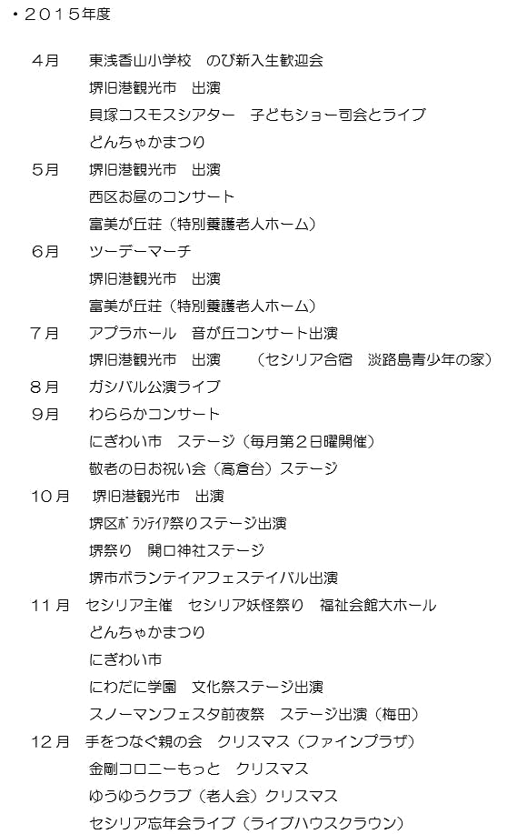 堺市、奈良市、姫路市、赤穂市、佐用市、尼崎市の幼稚園にコーディネーターとしてコンビで仕事をしてきています。
