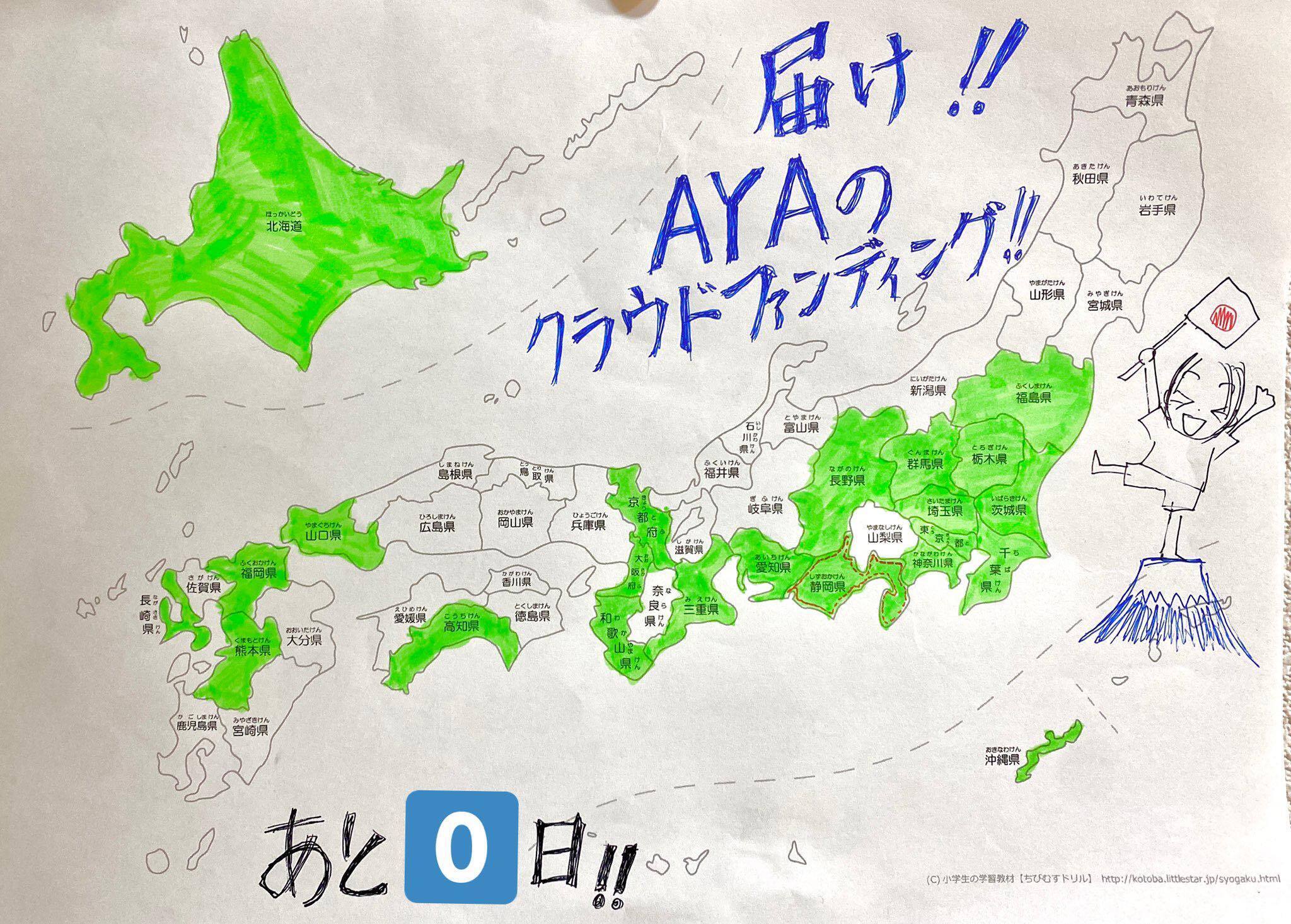 みなさん、こんにちは!AYAです!ついにクラファン最終日となりました。。。ということで、クラファンのリターンの現時点でのお届け先を日本地図にしてみました!皆様のご支援、本当に嬉しいです。 全国からありがとうございます。そして、真っ白な県にお住まいの皆様、是非、リターンを届けさせていただけたらと思います。それと、勢いで間違って静岡を塗ってしまいました(o*。_。)oペコッ静岡にお住みの皆様もどうか。。。少しでも多くの人に届いてほしい、と思って、自分の高校生時代の金銭感覚も思い出しつつ、値段設定もかなり考えました。あと3時間。海外大進学サポートを、全ての人に平等に届けるために、どうかご支援いただけたら嬉しいです。※リターン不要の方々、届けない種類のリターンの方々の住所は集めていないので、地図には反映されていません(o*。_。)oペコッ