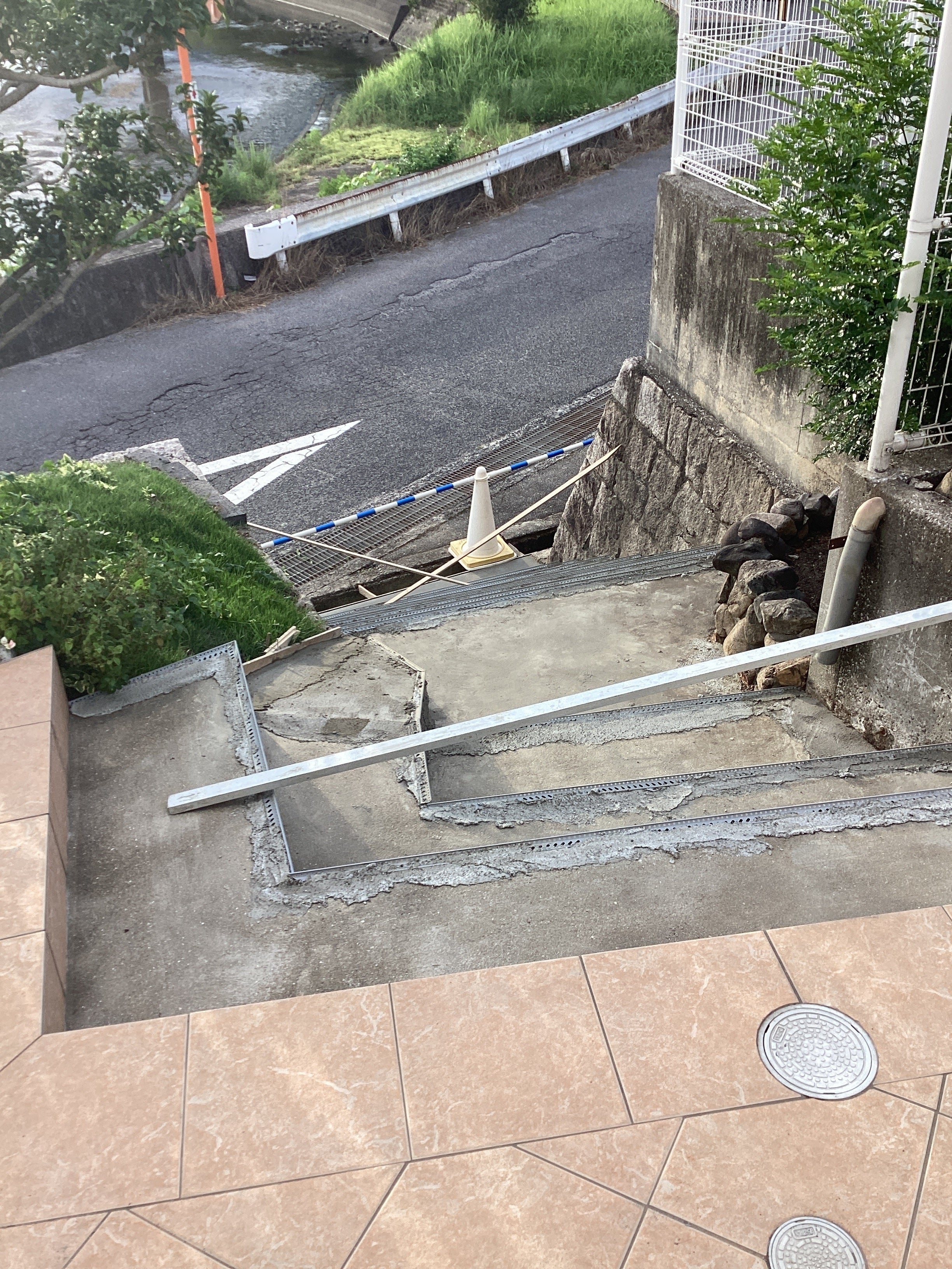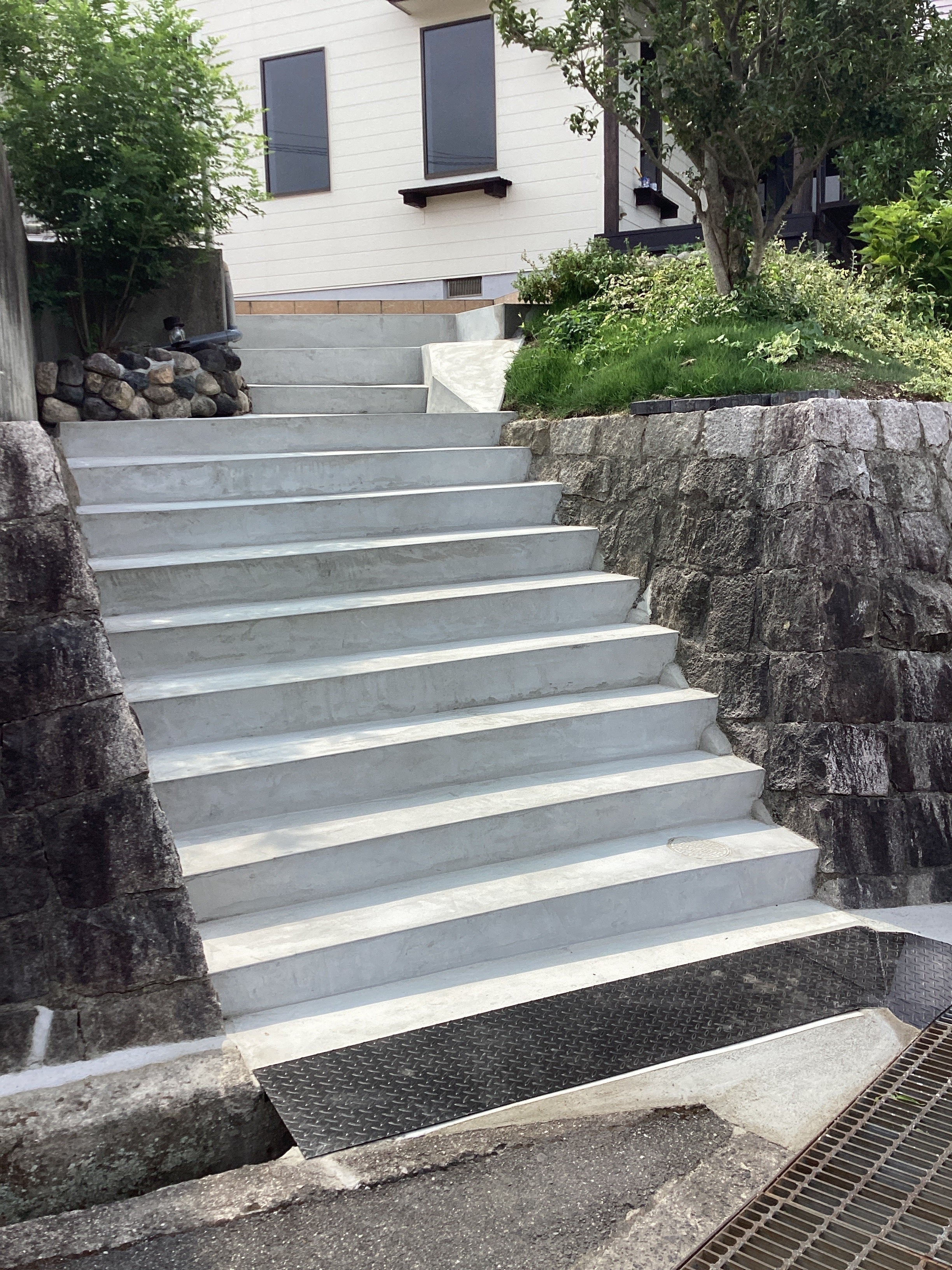 2022/08/10 10:06昨日、無事階段工事が終わりました!一昨日塗ったモルタルが雨で流れたりもありましたが、職人さんが綺麗な階段に仕上げてくださいました。階段入り口の側溝も鉄板で覆っていただきました♪ もっと見る