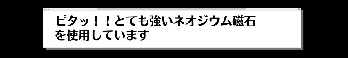 強力な磁石(ネオジム磁石)を2枚重なった状態になった場合、ピタッとくっ付いて、引き離そうとしても、簡単には離れません。これがネオジウㇺ磁石の特徴です。Penclip Type-C(ペンクリップタイプ‐C)は、使いやすいように角をカットし、指先で引き離しやすく設計されています。繰り返し使える頼りになるペンホルダーです。