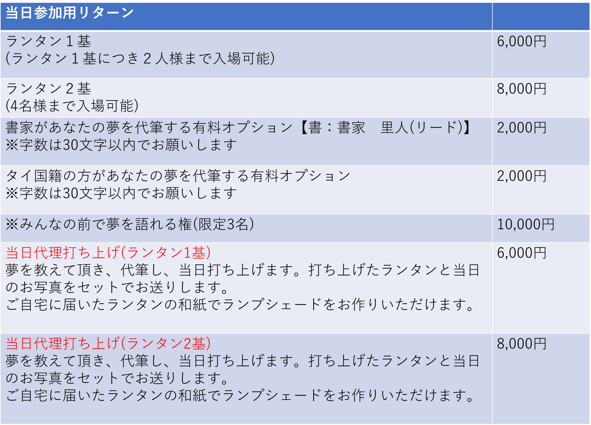 ランタンの数が多ければ、多いほど舞い上がる夢の数も、現地での綺麗さもupします!
