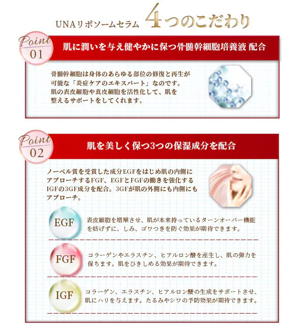 また、ノーベル賞を受賞した成分である3GFのEGF/FGF/IGFをはじめとして骨髄幹細胞培養液、