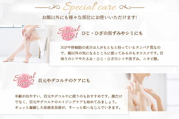 この想いを実現するために、美容液には余計な成分をいれずに肌自身が持つ自然の回復力を引き出し本来の働きを取り戻すスキンケアを目指しました。