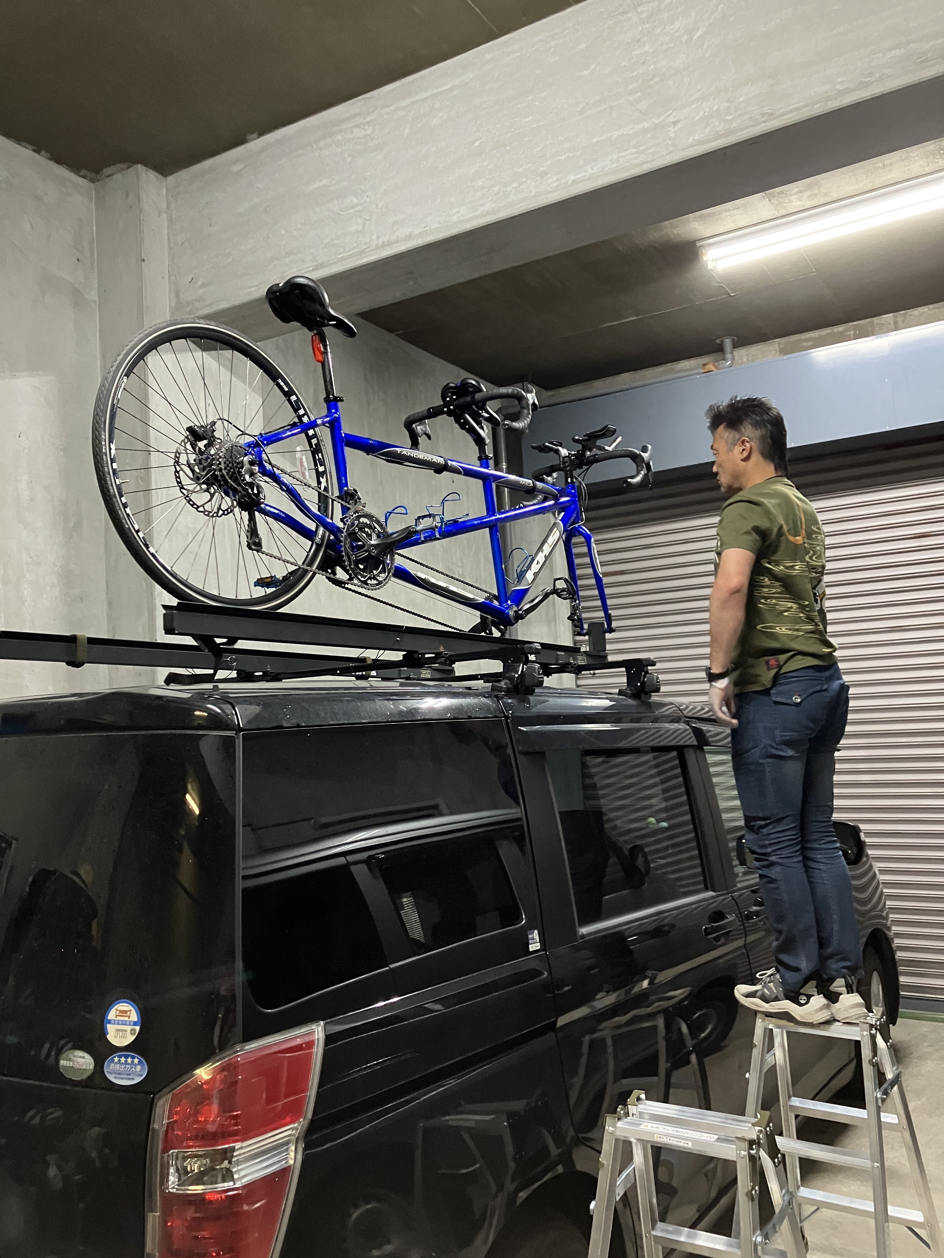 大阪から、千葉県銚子市までタンデム自転車を積載していって、、、ライドはスタートするんですけれど、、、タンデムの車での搬送って、結構大変です_:(´ཀ`」 ∠):それをクリアしてくれたのが、ご厚意でお借りできた、、、スーリーのタンデムキャリア!!(しかも2本)車の上にタンデムを二台載せて!車の中に折りたたみタンデムを一台載せて!近畿から新しい風を太平洋岸自転車に送ります╰(*´︶`*)╯♡引き続き、お見守り、ご支援の方を、よろしくお願い致します。