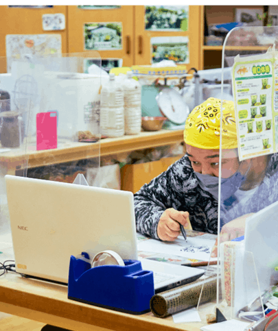 クッキー等の洋菓子を製造しています。併設のカフェや他の店舗でも販売しています。また農作業も行っており、自家農園で採れた野菜は、カフェや店舗のお客様の元へ。施設外就労近隣の幼保連携型認定こども園様の園庭整備や、園舎の清掃を行っています。