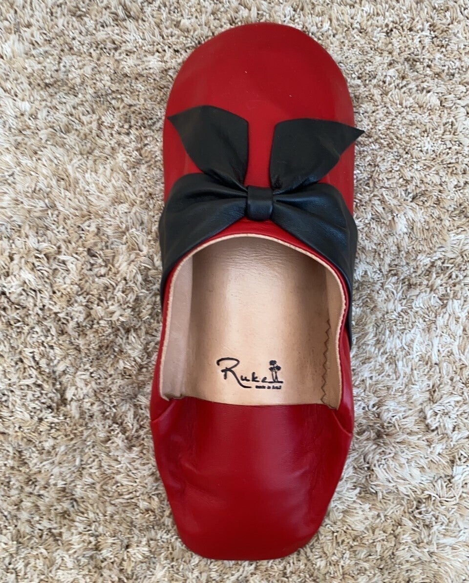 「バブーシュ」はモロッコの革製スリッパのことで、かかとの部分がぺったんこになっているのが特長です。