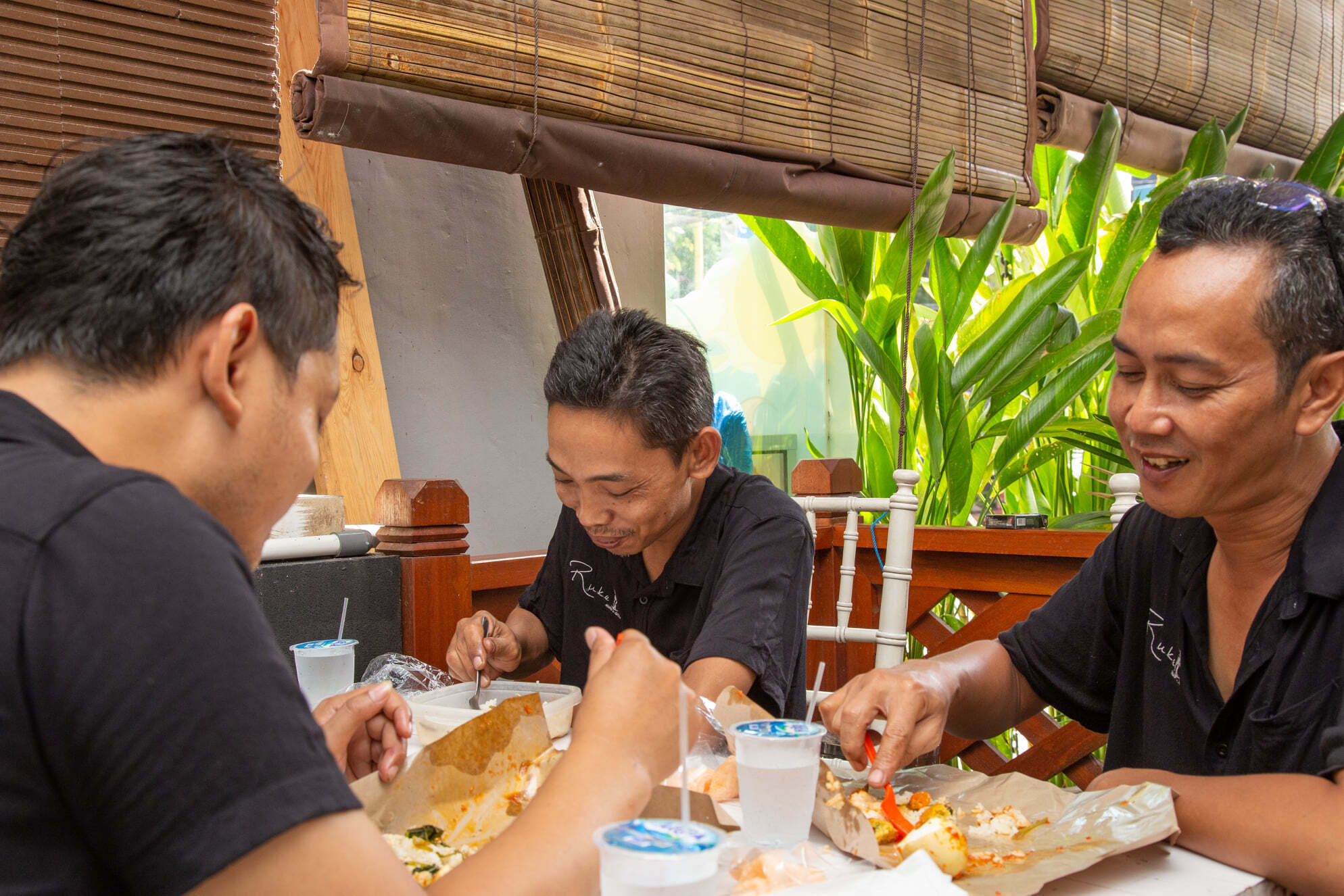 ちなみにナシチャンプルは、店先にたくさん並んでいるおかずから好きなものをセレクトしてごはんの横にのせてもらい、紙に包んでもらうインドネシア人の国民食です。