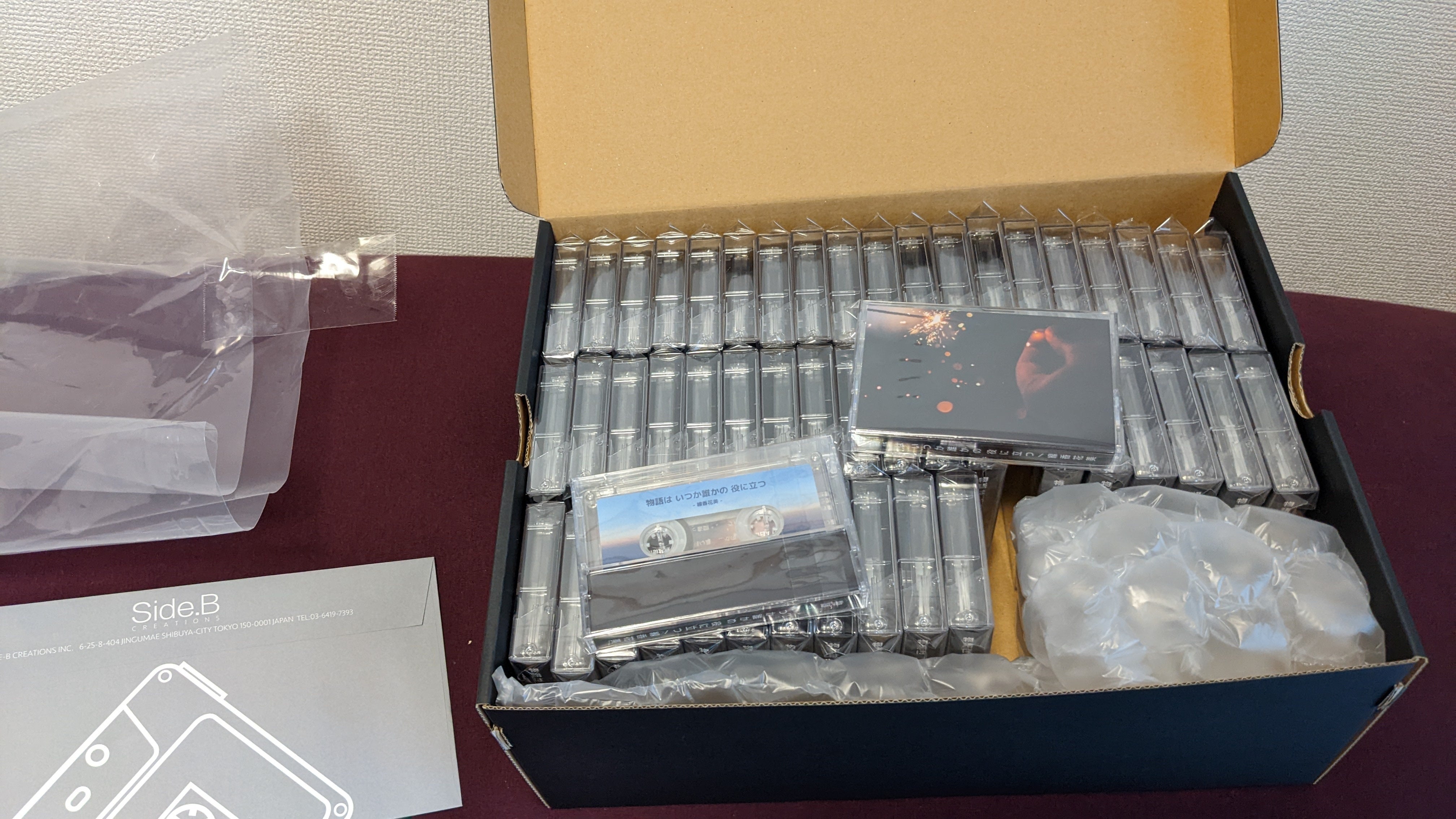 クラウドファンディングにカセットテープ付きのリターンでご支援いただいた方へのご郵送や、ライブイベント会場にて配布することを予定しております。