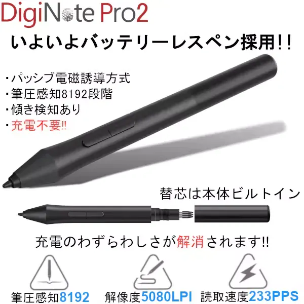 「バッテリーレスペン採用について」環境やユーザー様の利便性を考慮して、開発を進めてまいりました。