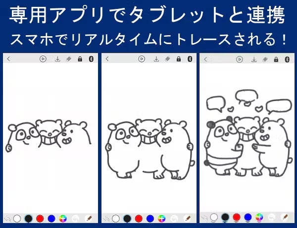 スマホの専用アプリと連携し、描画を同時に表示可能。アイデア次第でさまざまな場面で活躍します!