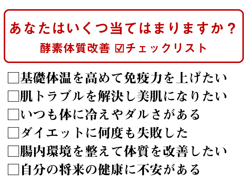 腸内細菌環境(腸内フローラ)が整うことによって排便習慣が改善されることで、体重の減少、皮膚のつや向上、デトックス効果、活力増加を期待できます。飲むだけでなく、ヨーグルトに入れて食べる酵素としてもお勧めいたします。