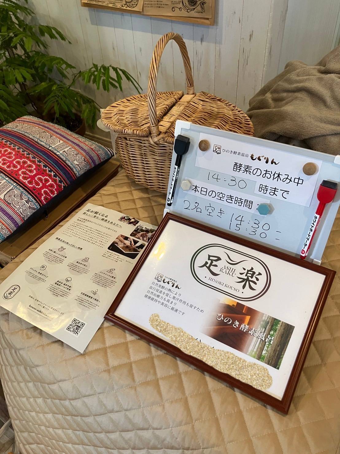 一般的な酵素風呂は体を全て酵素に埋める”全身浴”となり、小さいお子さまや高齢者の方には身体への負担を感じる方もいらっしゃいますが、この”ひのき酵素足浴《足楽》”は年齢や体力に関係なく利用することができます!
