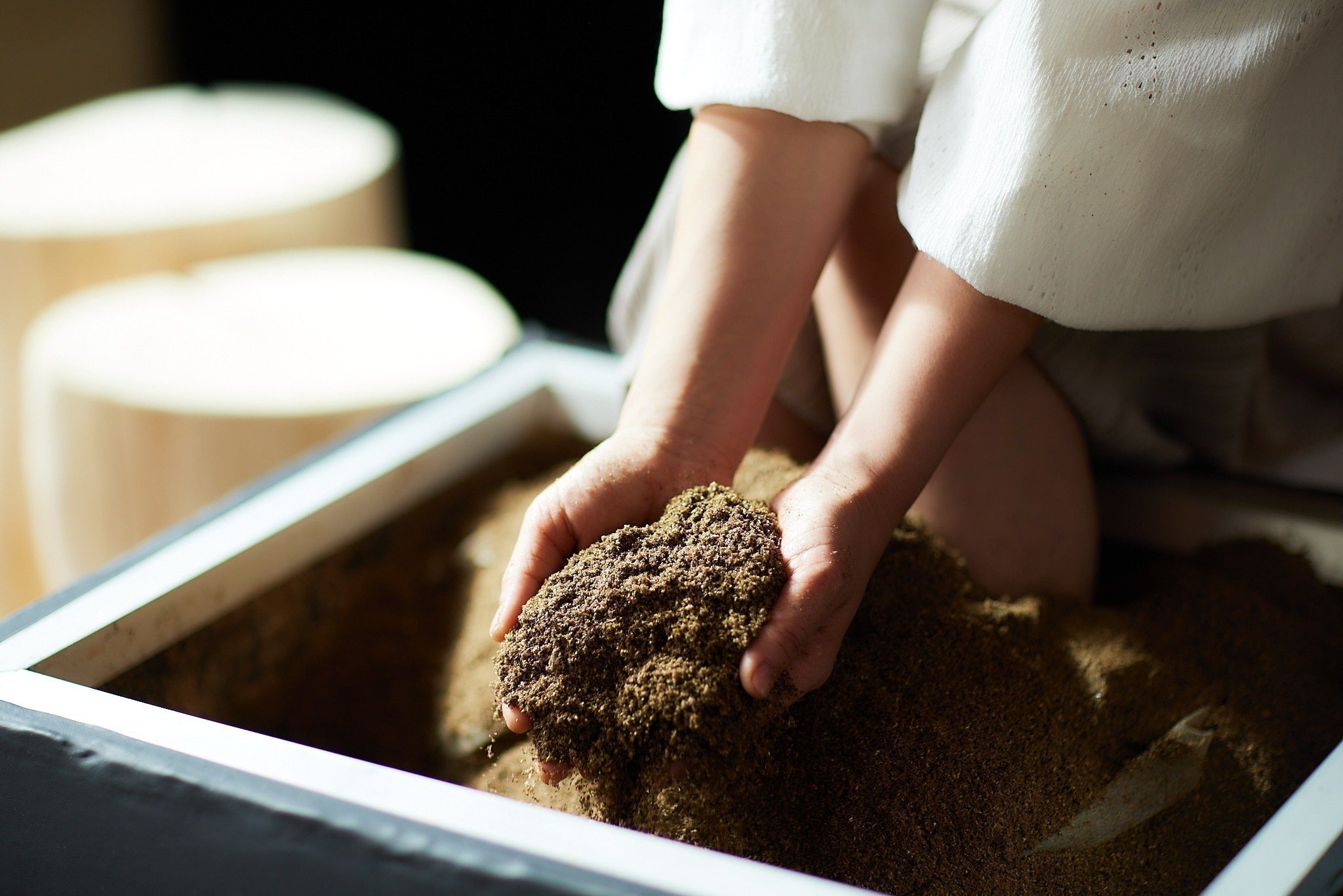 おがくずや米ぬかなどを熟成した良質な酵素に浸かって、微生物が発酵する際に生み出される健康増進に必要な成分と熱で体を温めて改善する温浴法です。