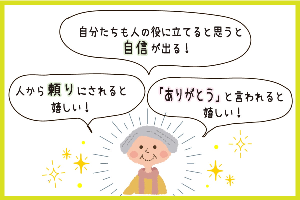シニアさんに、「これお願いできる?」と出来ることを見つけてお願して「ありがとう、助かったよ」、とお礼を言うといつも嬉しそうな表情を浮かべてくれます。