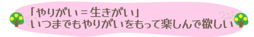 「やりがい=生きがい」の取り組みとは、何歳になっても日常の中にやりがいを持って、活気のある毎日を過ごしていただくことです。生きがいがあると、精神的な楽しさや充実感、体の健康にも役立ちます。