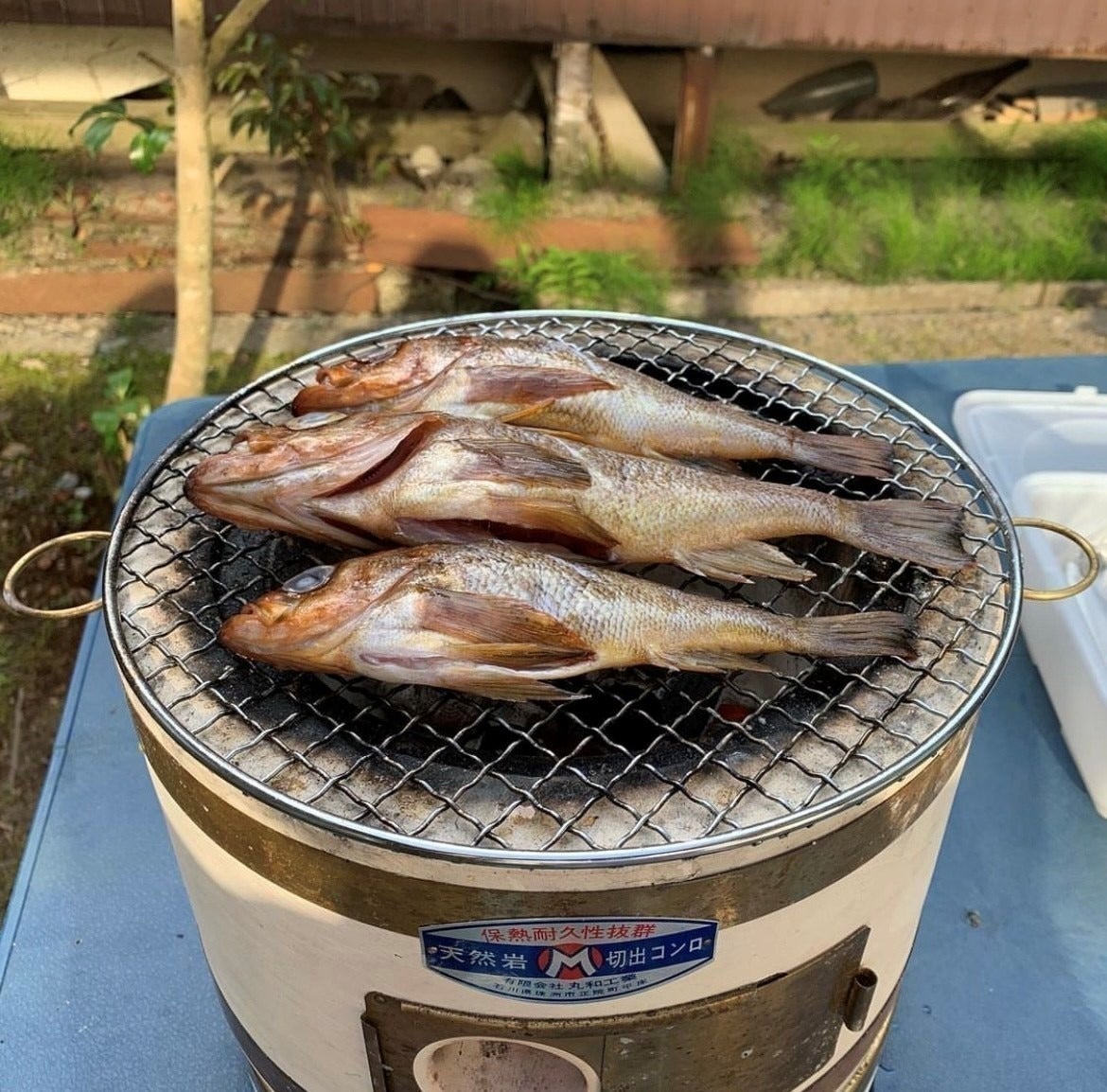 珪藻土の七輪の特徴は、真っ赤になっても外側は火傷(やけど)するような熱さにならないことです。保温断熱効果が高いんです。燃料をうまいこと使えるから省エネにもなる。金属でできたバーベキュー道具やらがたくさん出回ってますが、切り出し七輪は金具を離せば、土に返るからゴミにもならんわけや。珪藻土は、これからの時代(SDGs)にうってつけの宝です。