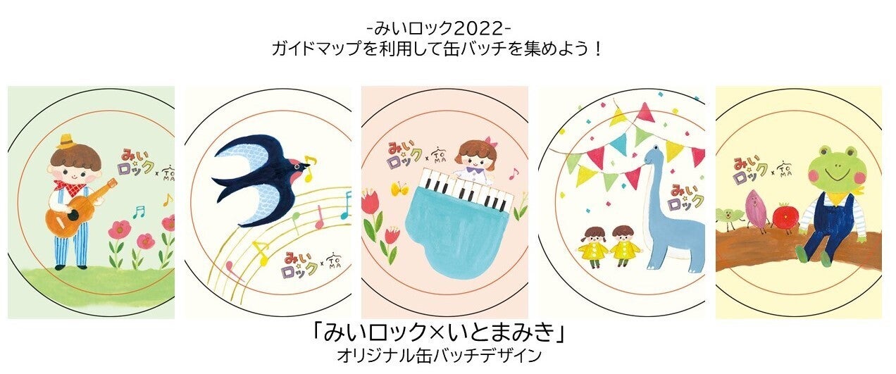 当日は会場だけでなく各地で「いとまみき×みいロック」の限定Tシャツを着て応援して下さる事を願っています。またイベント会場や店舗などで「みいロック2022 特典ガイドマップ」をもらってオリジナル缶バッチを集めましょう!(利用期間2022年10月15日~12月31日を予定。またはなくなり次第に終了)