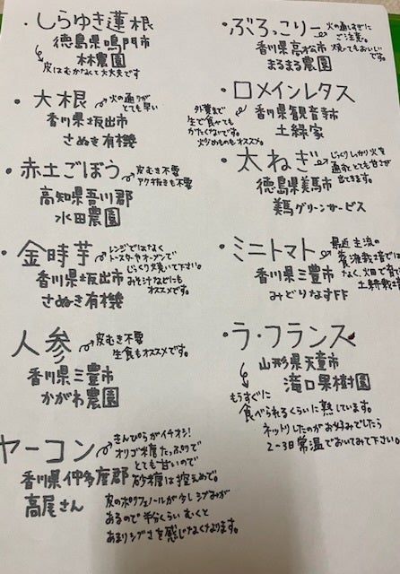 2023/01/22 18:072023.1.21SANUKISの鹿庭さんより野菜セットが届きました。畑に行く八百屋 SANUKISの鹿庭さんこの冬イチオシである選抜のお野菜達です。鮮度そのまますぐに配送致しましたので届くまでお待ち下さい。 もっと見る