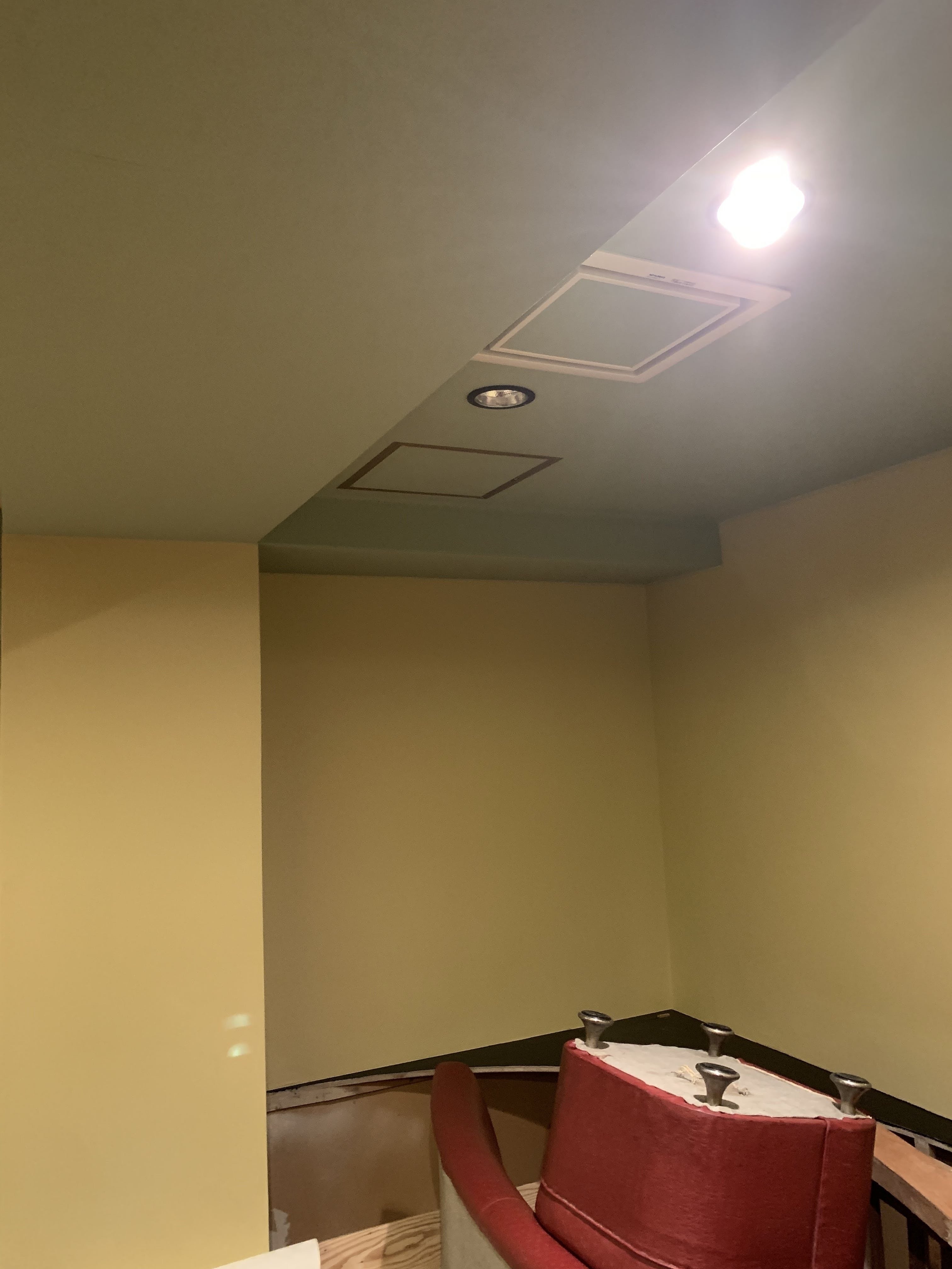 天井は少し落ち着いた緑、そして壁紙が黒い方はバーエリア。