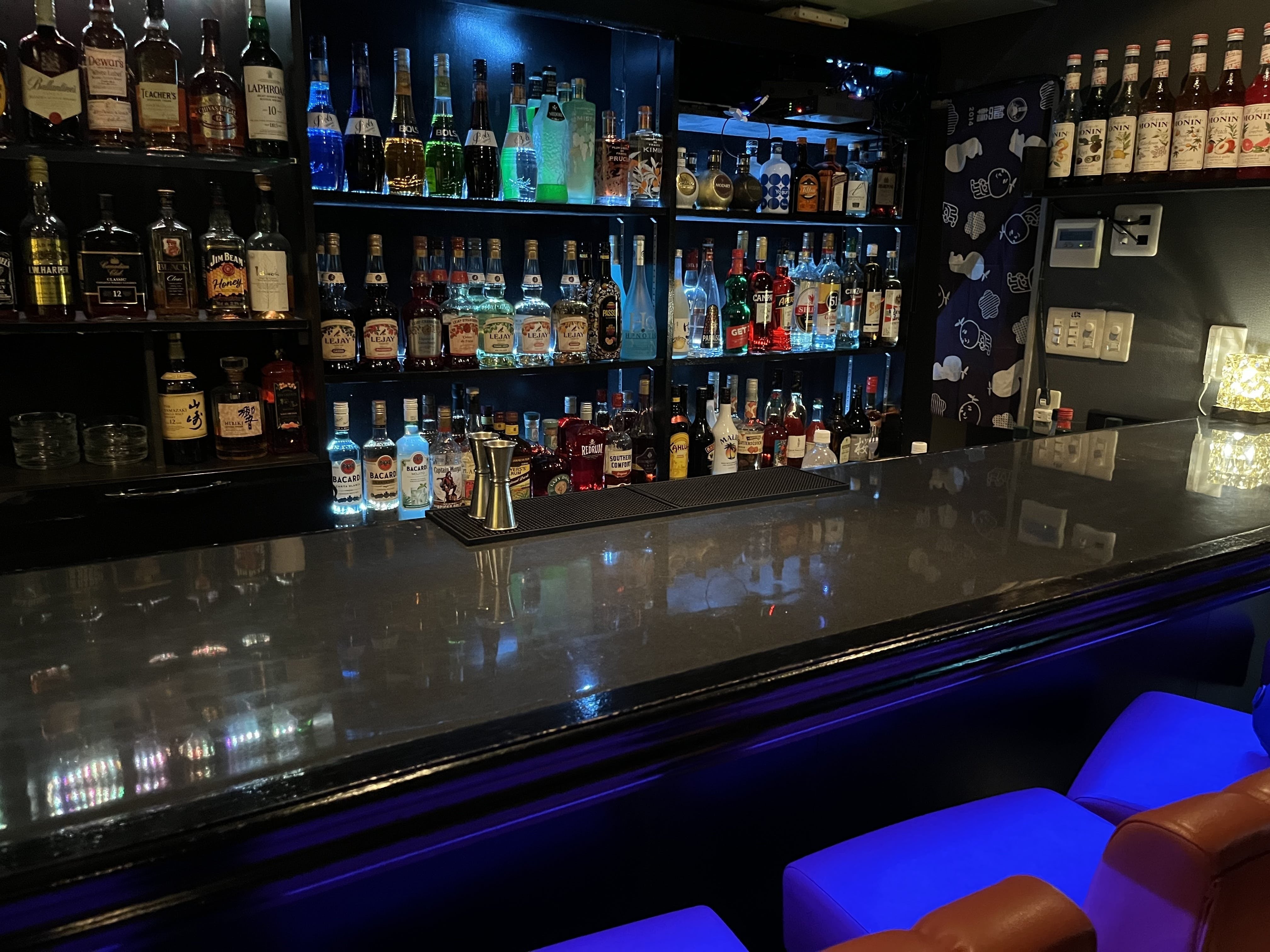 当店は170以上のオリジナルカクテルがございますので、リキュールもかなり多いですがなんとか棚に納まりました…!